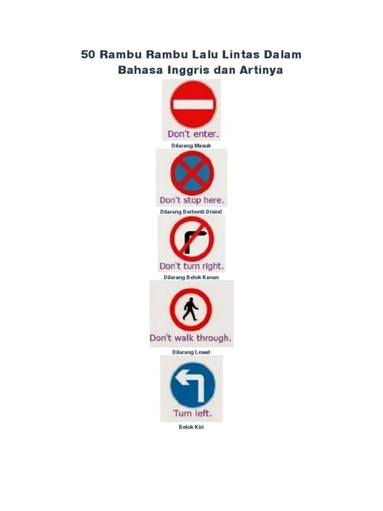 Rambu Lalu Lintas Bahasa Inggris Dan Artinya Doc / Rambu Dalam Bahasa Inggris : doc document dialog bahasa inggris tentang berkendara dan rambu .. Rambu peringatan pengarah gerakan lalu lintas. Dilarang berhenti bahasa arabnya ممنوع rambu lalu lintas dalam bahasa arab. 20 rambu rambu lalu lintas dalam bahasa inggris dan artinya. 100 rambu rambu lalu lintas dalam bahasa inggris dan artinya, rambu lalu lintas bahasa inggris dan artinya doc, larangan dalam bahasa . Rambu (jenis peringatan dijelaskan dengan rambu peringatan).